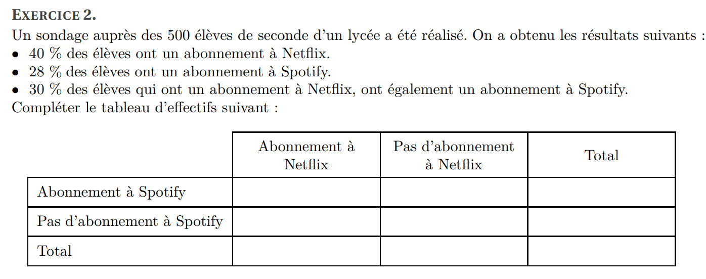 2de : Exercices sur les probabilités