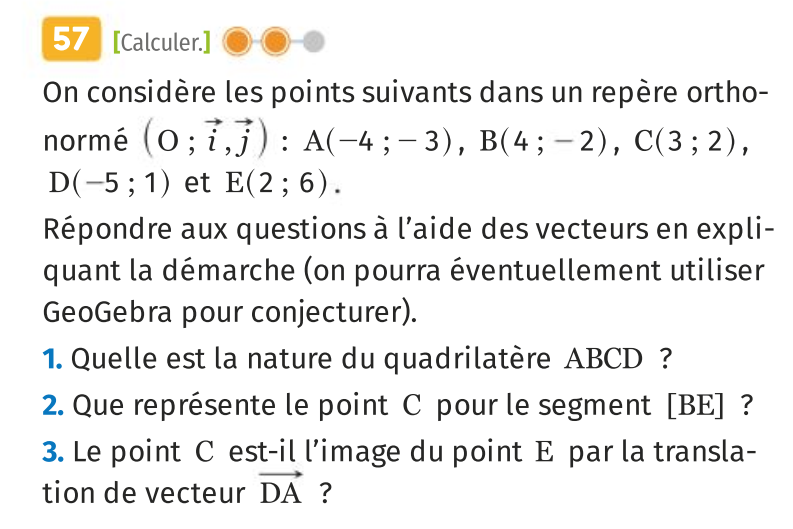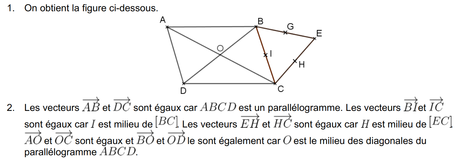 Pour le démontrer on va prouver que \( \overrightarrow{BC}=\overrightarrow{CE}\).