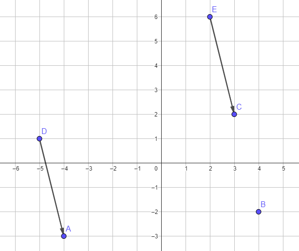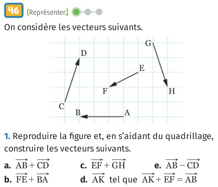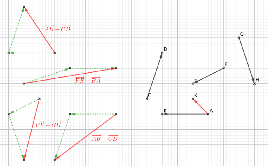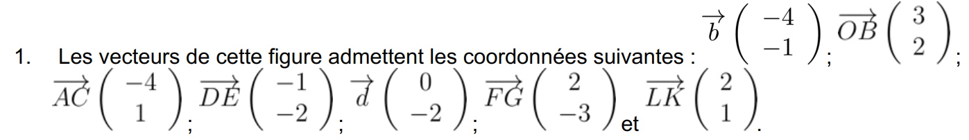 - Pour représenter un vecteur \(\overrightarrow{AB}\) on trace une flèche dont le point initial est \(A\) et l’extrémité est le point \(B\).