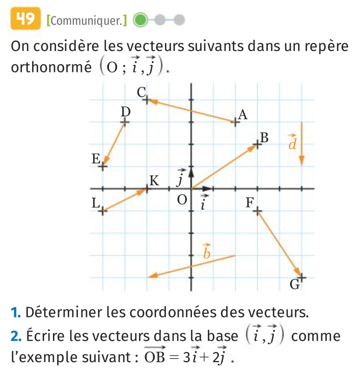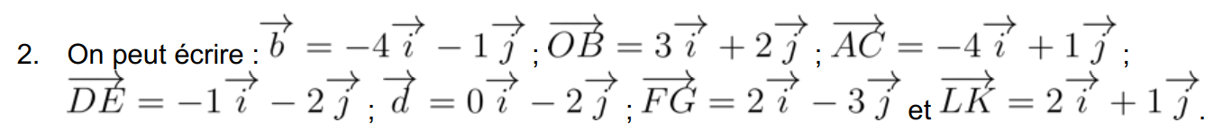 Exemples : Dans le repère (O, I , J), on a :