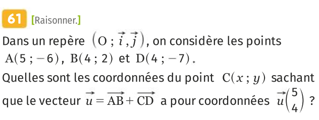 Calculer les coordonnées du point D tel que ABCD soit un parallélogramme.