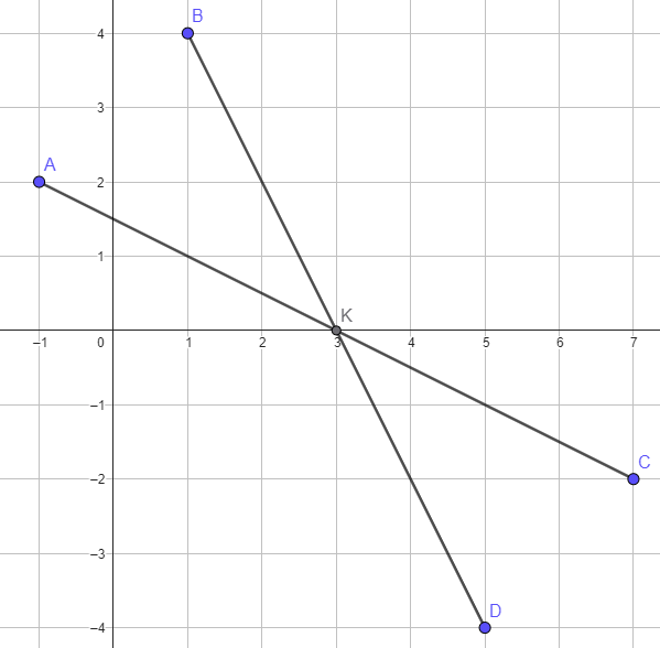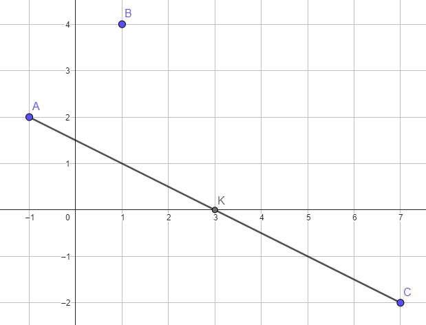 On calcule les coordonnées de K, le milieu de [AC], diagonale du parallélogramme ABCD.