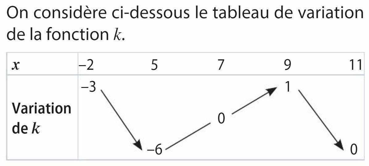 Quel est l'ensemble de définition de la fonction \(k\) ?