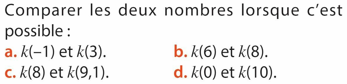 Question 4 : Il s'agit de déterminer les réels \(x\) qui ont une image positive par \(g\).