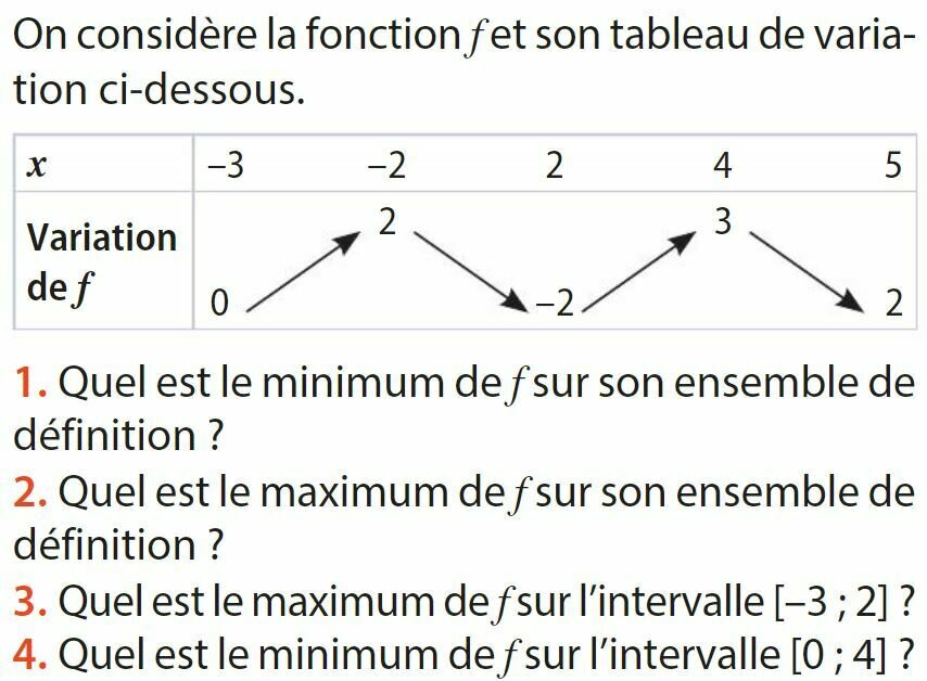 Quel est le maximum de \(f\) sur l'intervalle \([-3~;~2]\) ?