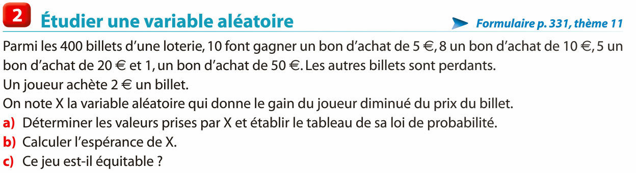 c)\;E(x)\neq 0 \text{ donc le jeu n'est pas équitable.}