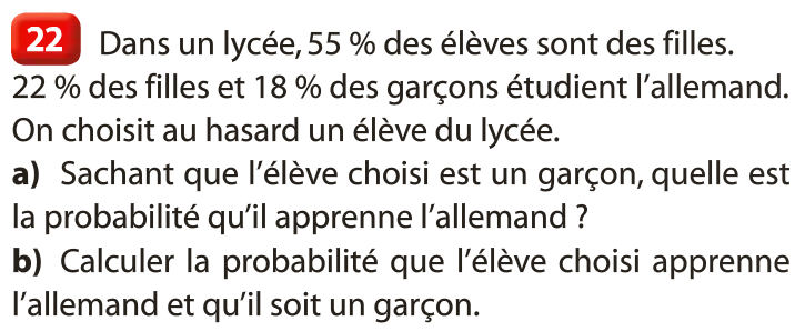 p_B(S) = 0,2\;donc\;\dfrac{p(S\cap B)}{0,7}=0,2