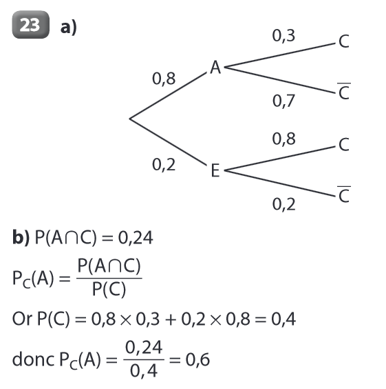 p_A(S) = 0,1\;donc\;\dfrac{p(S\cap A)}{0,3}=0,1