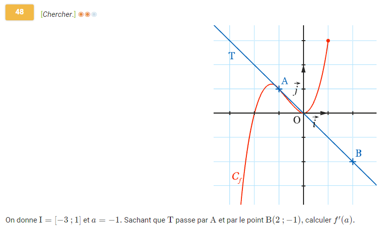 2. On cherche à déterminer \(a\) l'abscisse du point A tel que \(g'(a)=-1\).