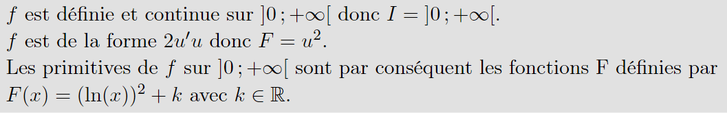c) F(x) = \text{ln}(x) + k \text{ avec }k\in \mathbb{R}