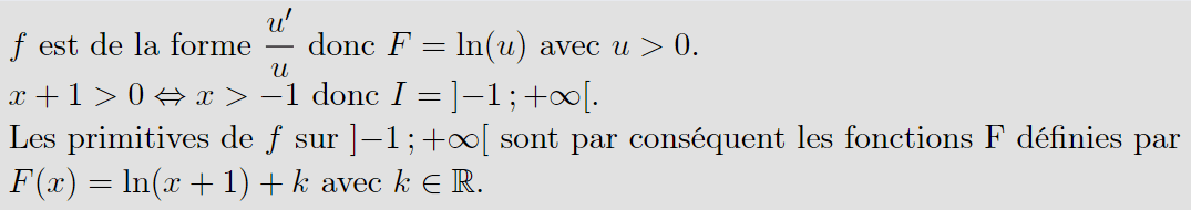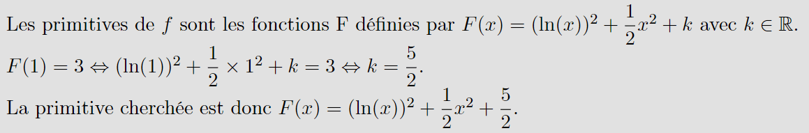 \text{On en déduit que }F(x) = \text{ln}(x) -5