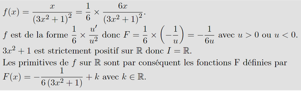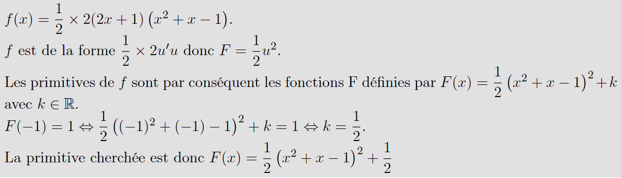 \text{On en déduit que }F(x) = \dfrac{1}{3}x^3 + \dfrac{7}{3}