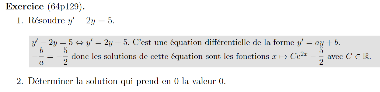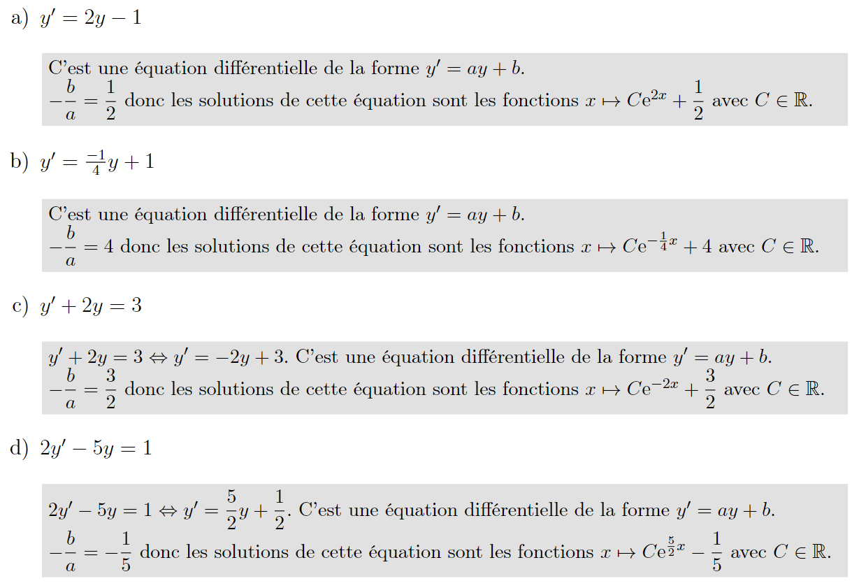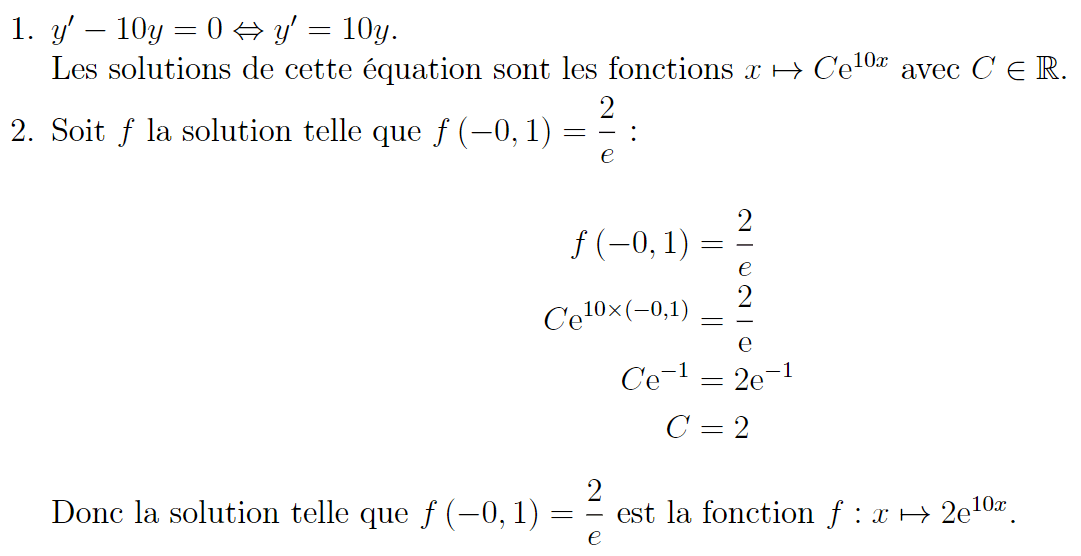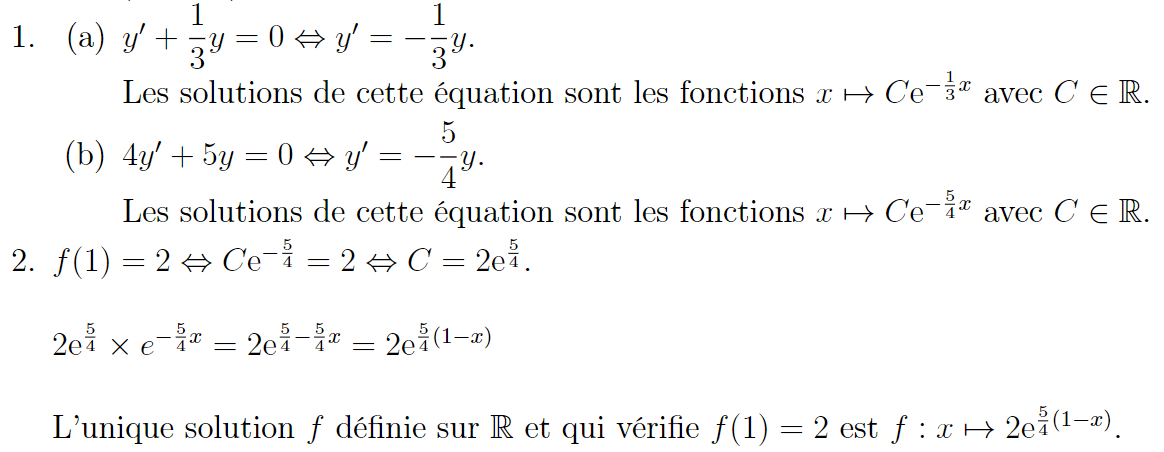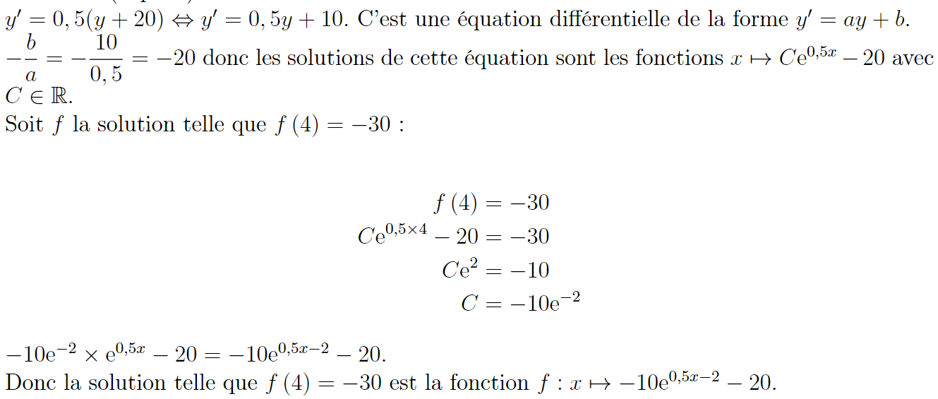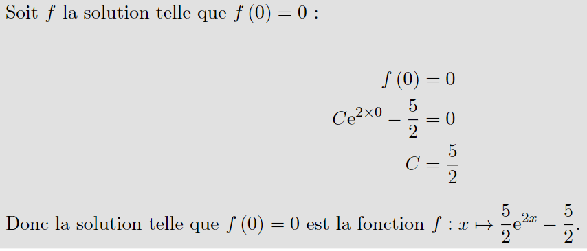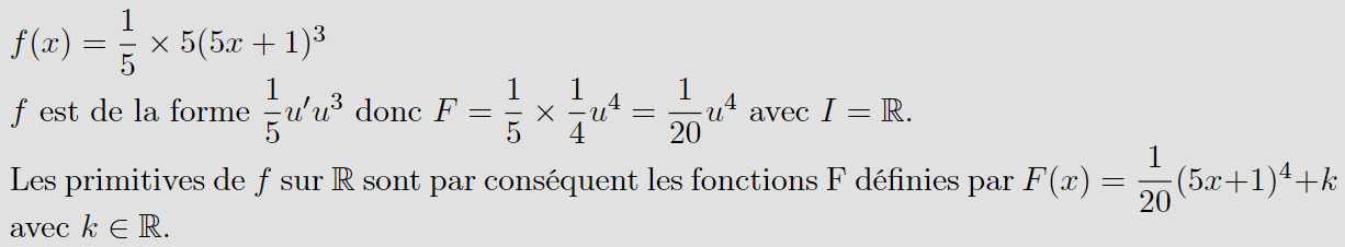 f= \dfrac{1}{5}\times u'\text{e}^{u}\text{ donc }F=\dfrac{1}{5}\times \text{e}^{u}.