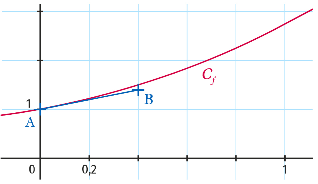 Au voisinage du point A, la courbe et sa tangente sont quasiment confondues.
