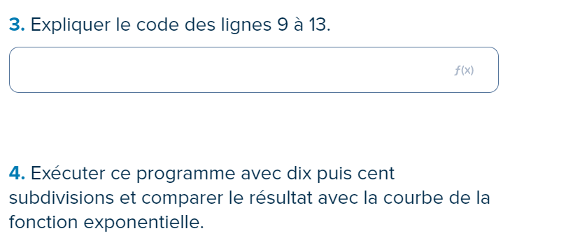 - A la ligne 10 : calcul de l’abscisse suivante en ajoutant le pas à l'abscisse précédente.