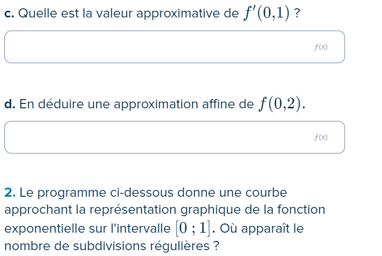 Dans la question 4) nous nous sommes demandés : "Quelles sont les fonctions définies et dérivables sur ℝ telles que, pour tout réel \(a\), \(f'(a)=2\) ?"