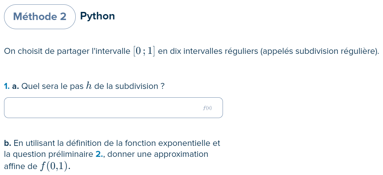 expEuler(pas,n)Un autre script avec en plus l'affichage de la fonction exponentielle :