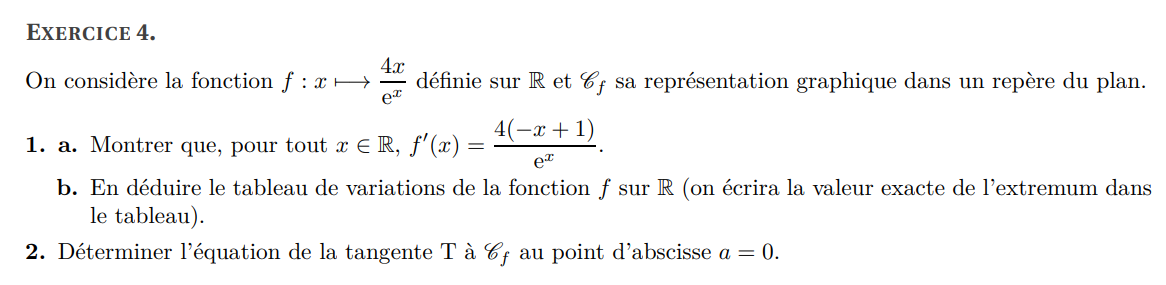 On considère une fonction \(f\), dérivable sur son ensemble de définition.