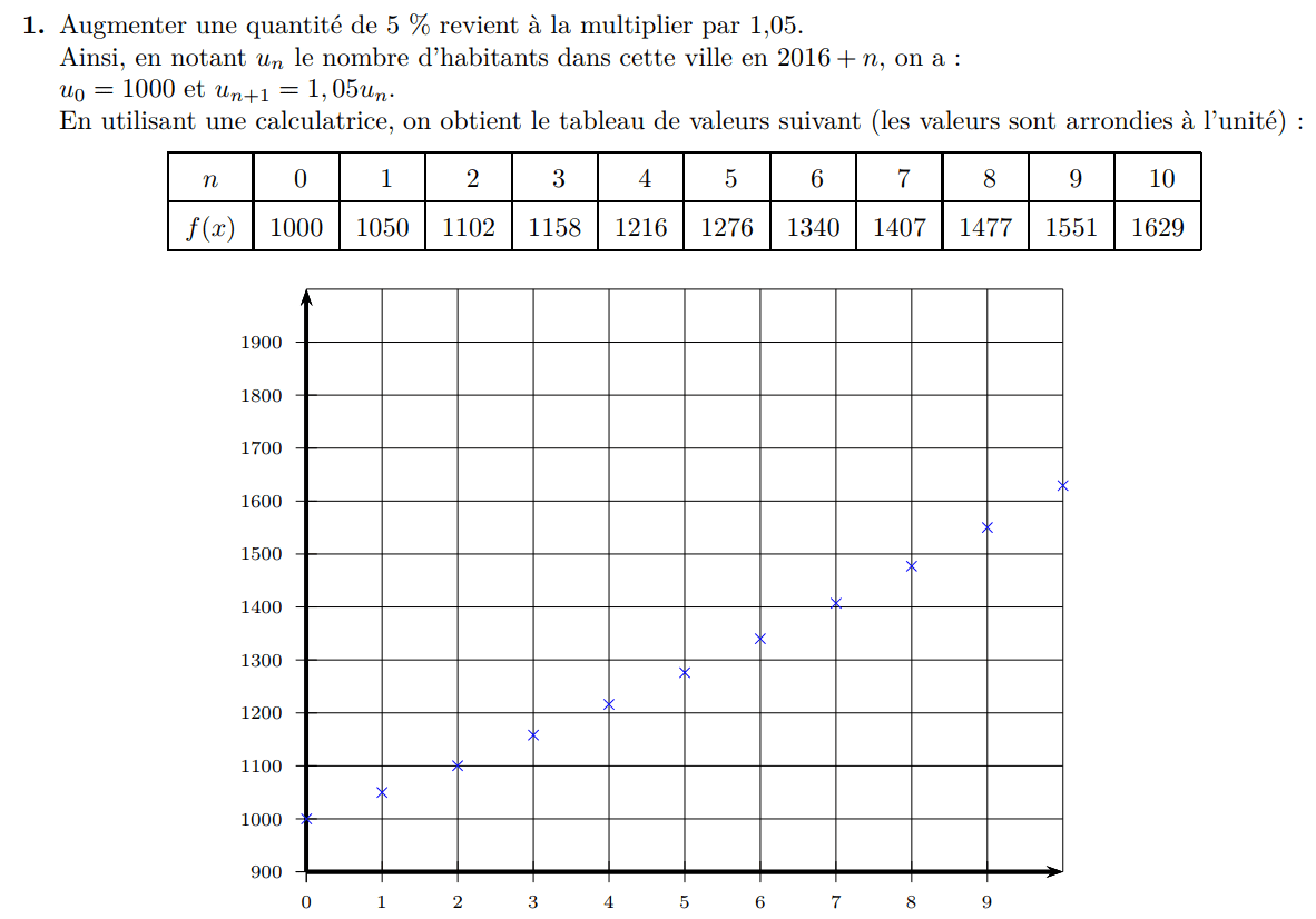 - A la ligne 12 : calcul de l’ordonnée correspondante en multipliant l’ordonnée du point précédent par 1+ le pas
