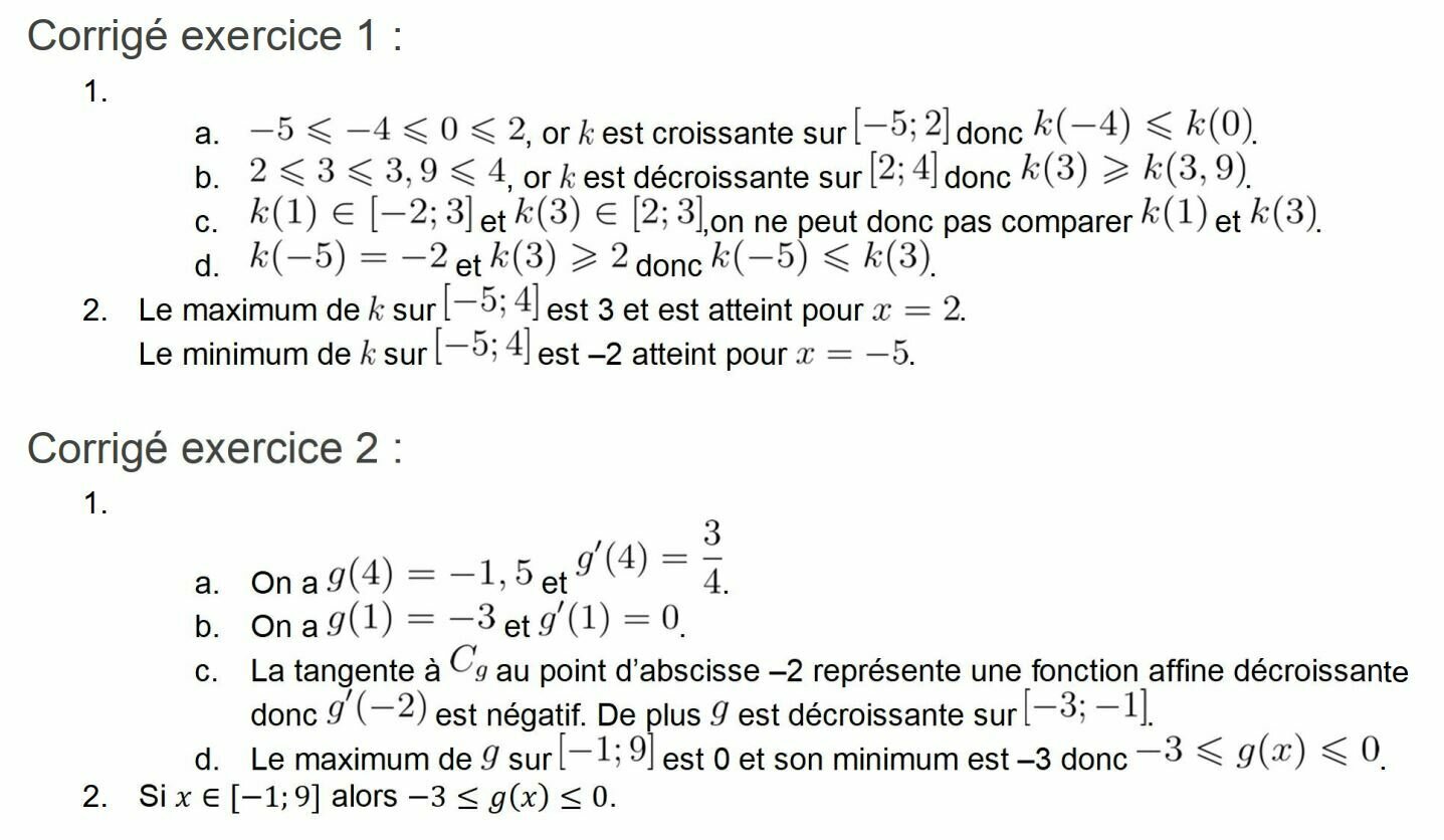D'après le tableau de variations de \(f\), lorsque \(x\in [-2\,;3]\), \(-59\leqslant f(x)\leqslant 53 \).