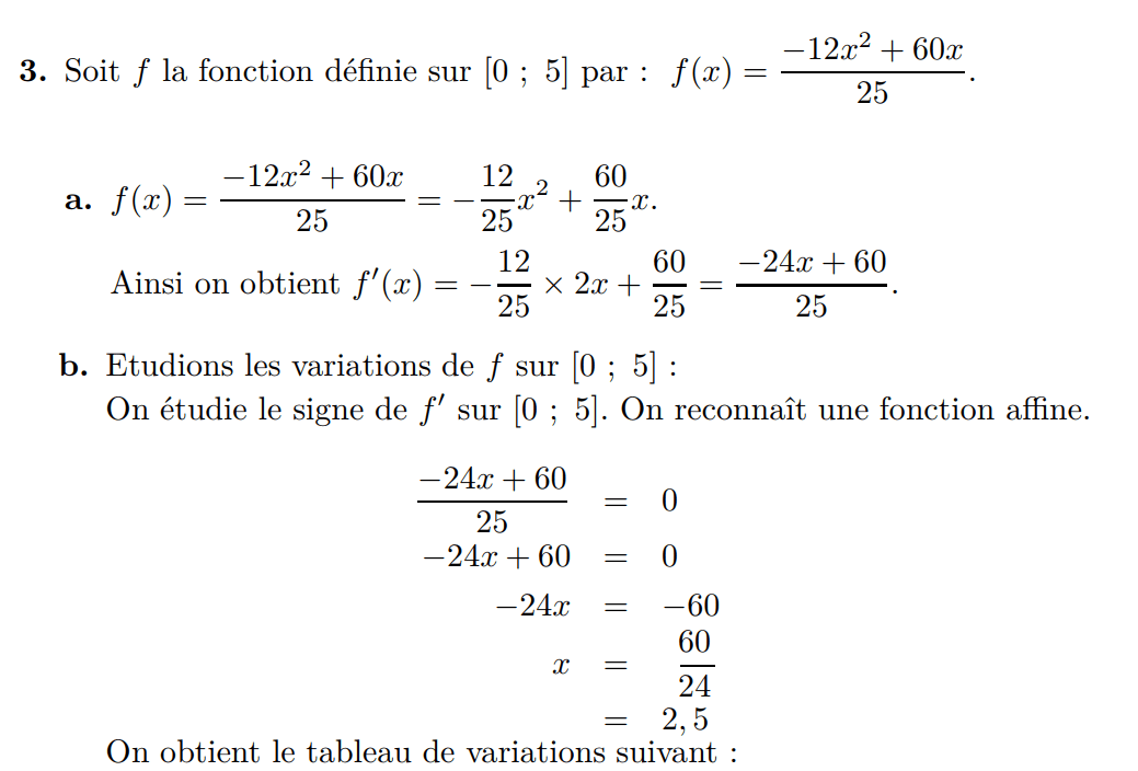 Pour le démontrer on détermine les variations de la fonction en étudiant le signe de la dérivée...