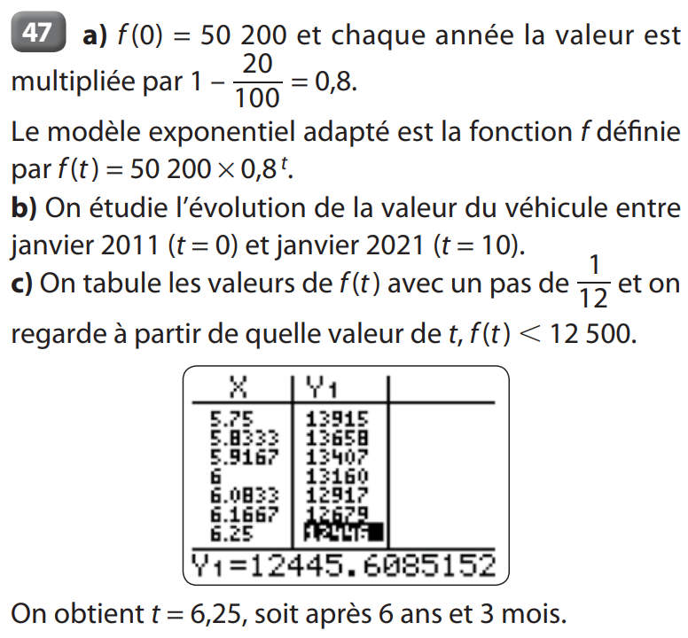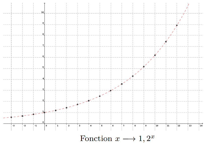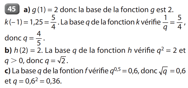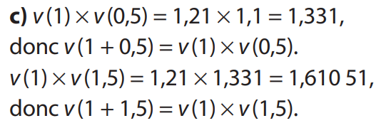 Remarque : On utilise la calculatrice pour calculer des images par ces fonctions. Par exemple, l’image de 2,3 par la fonction exponentielle de base 1,21 est