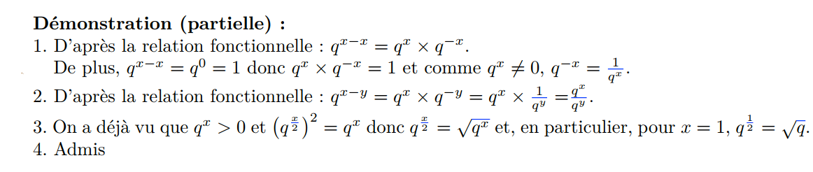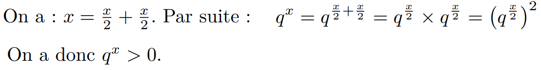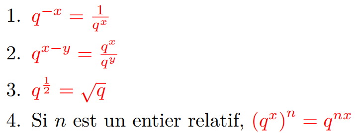 Rappel : Soit 𝑞 > 0 et x, y deux réels. Alors :