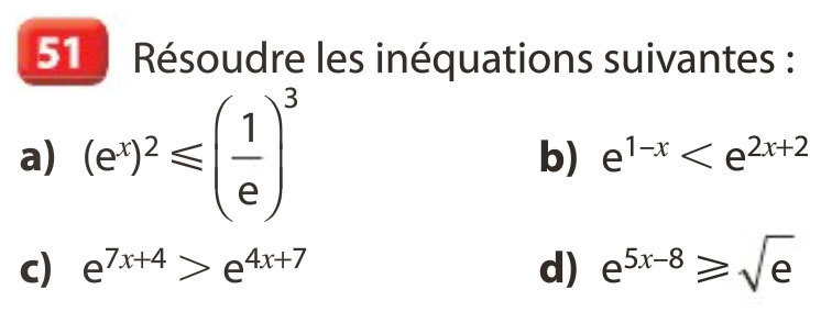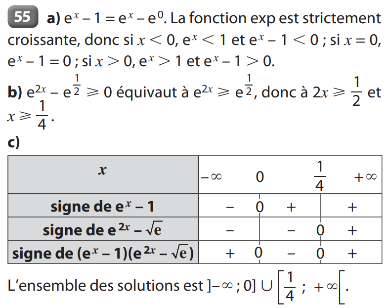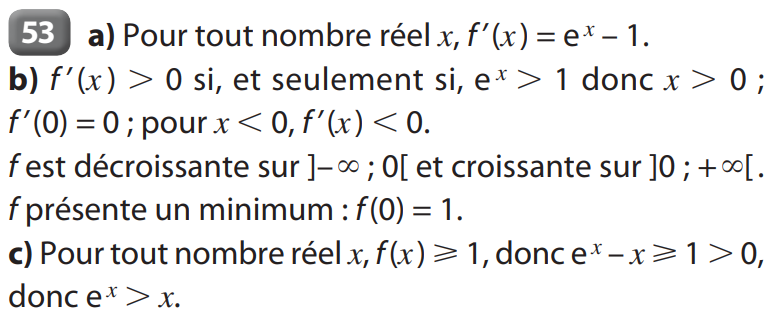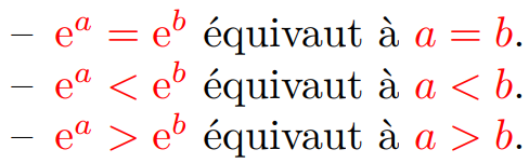 Propriété : La fonction exponentielle est strictement croissante sur R.