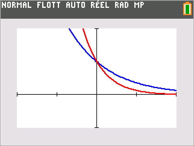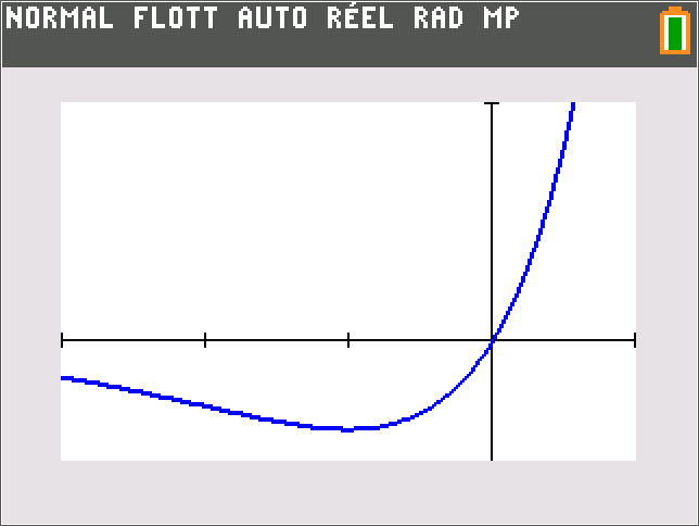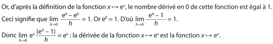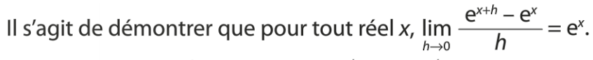 - On a déjà vu que . La dérivée de la fonction exponentielle est donc strictement positive. On retrouve le fait que la fonction exponentielle est strictement croissante sur R.