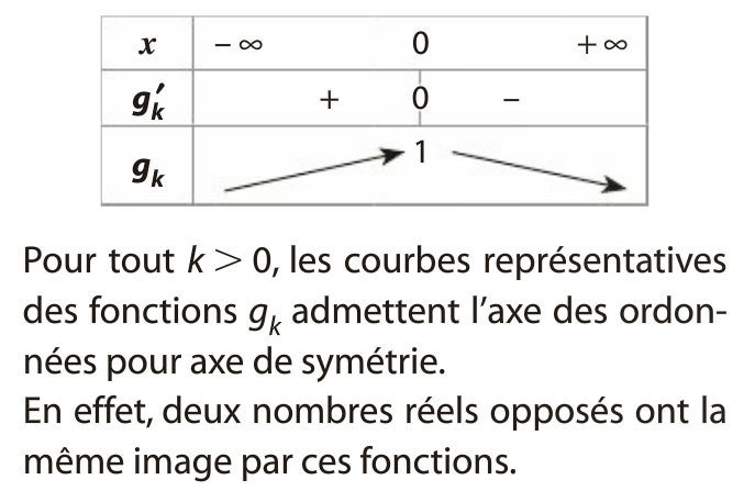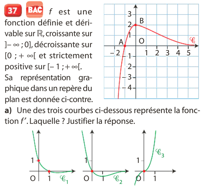 a) f est croissante sur ]–∞ ; 0] et décroissante sur [0 ; +∞[, donc f ’ est positive sur ]–∞ ; 0] et négative sur [0 ; +∞[, ce qui correspond à la courbe C2.