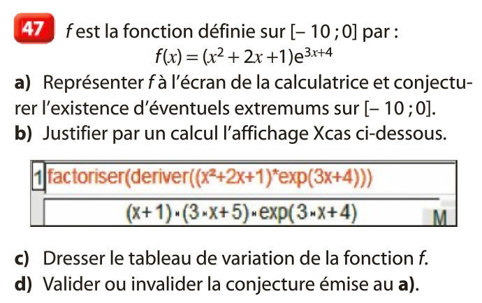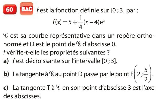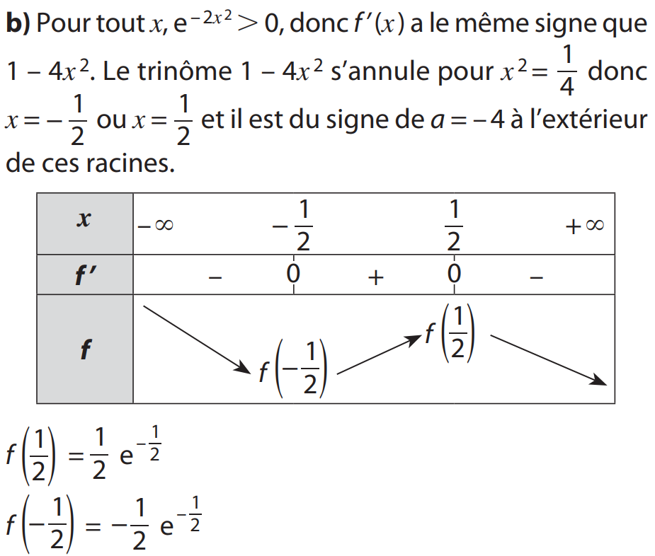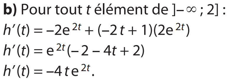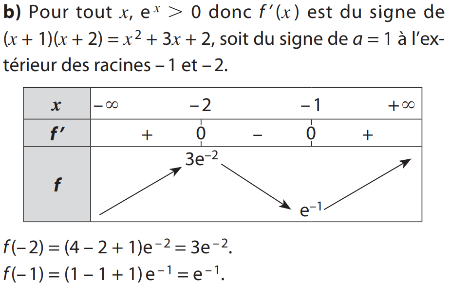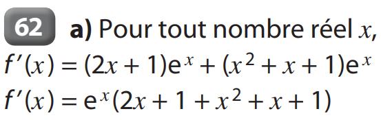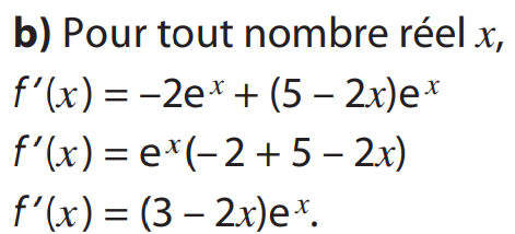 f est le produit de deux fonctions dérivables sur ]\( -\infty ; +\infty \)[ donc f est dérivable sur ]\( -\infty ; +\infty \)[.