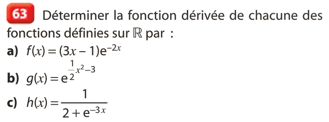 Dérivée de \(e^u\) : (\(e^u\))' = \(u'e^u\)