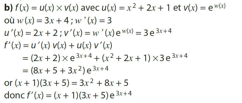 Remarque : En particulier, comme l’exponentielle est strictement positive, f' est du même signe que u'.