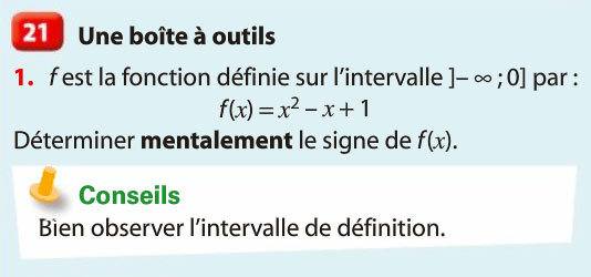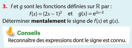 Pour les variations de \(f\) : On étudie le signe de la dérivée \(f '\)