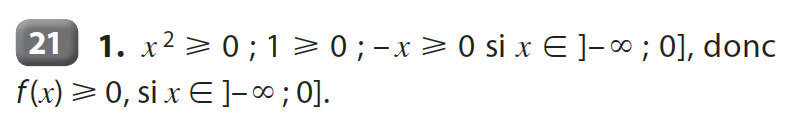 Or pour tout réel x on a \( x^2 \geq 0\) donc la courbe Cf reste au dessus de la courbe Cg avec un point de contact : J (0 ; 1)