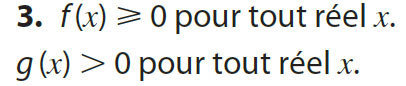 Ici f et g sont strictement positives : \( \frac{f(x)}{g(x)}=\frac{e^{-x}}{e^{-2x}}=e^{-x+2x} = e^x \)