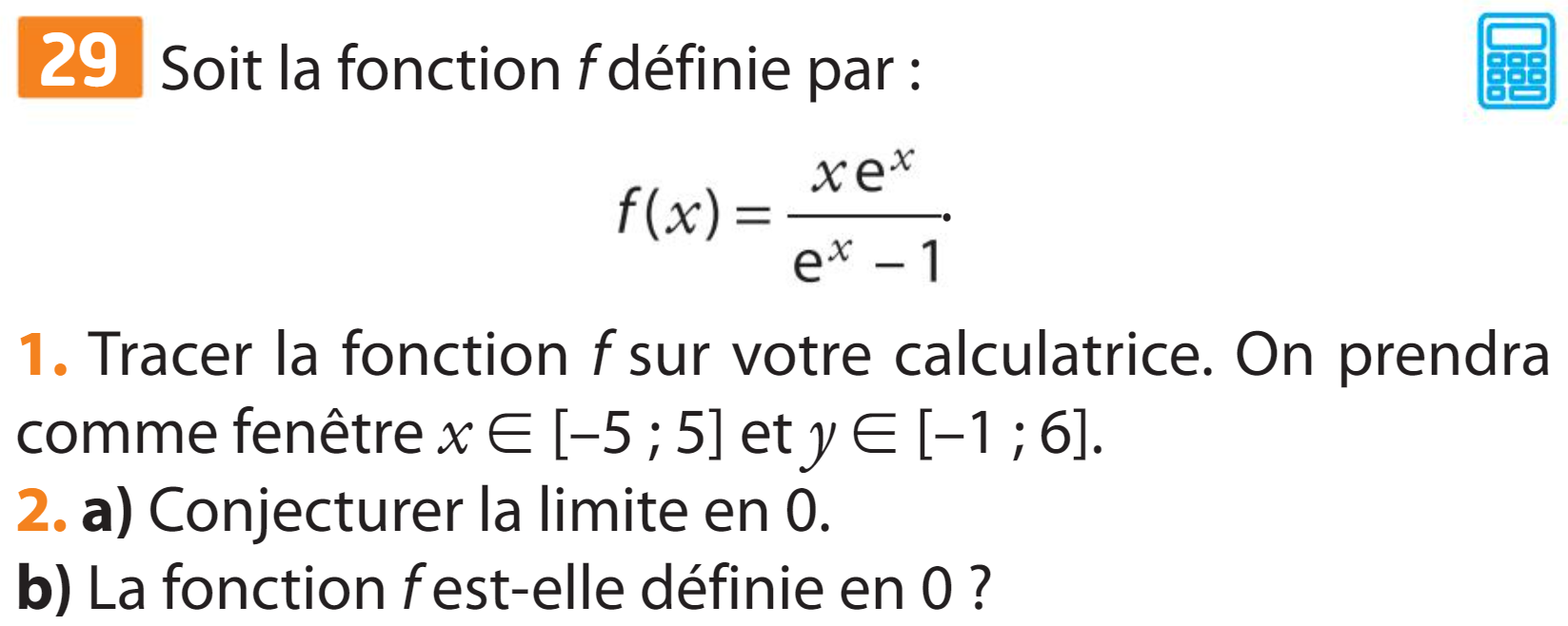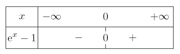 Pour déterminer s'il s'agit de \(+\infty\) ou de \(-\infty\), on étudie le signe de \(e^x-1\) selon les valeurs de \(x\).
