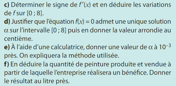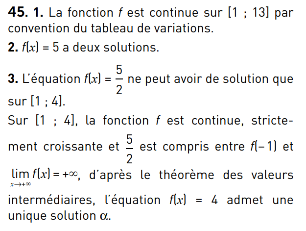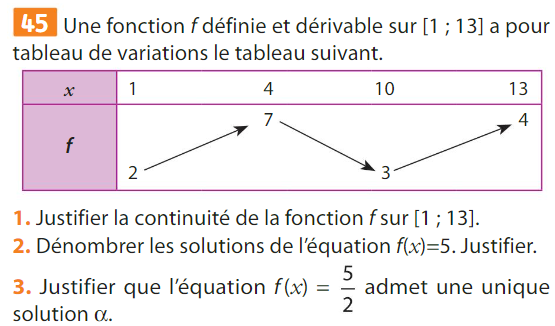 La fonction \(f\) est dérivable sur \([1~;~13]\) donc elle est continue sur cet intervalle.