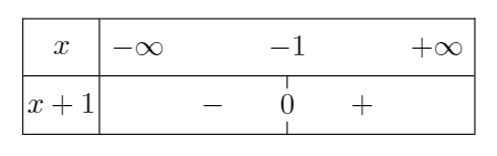 Pour déterminer s'il s'agit de \(+\infty\) ou de \(-\infty\), on étudie le signe de \(x+1\) selon les valeurs de \(x\).
