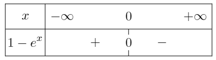 Pour déterminer s'il s'agit de \(+\infty\) ou de \(-\infty\), on étudie le signe de \(1-e^x\) selon les valeurs de \(x\).