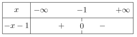 Pour déterminer s'il s'agit de \(+\infty\) ou de \(-\infty\), on étudie le signe de \(-x-1\) selon les valeurs de \(x\).