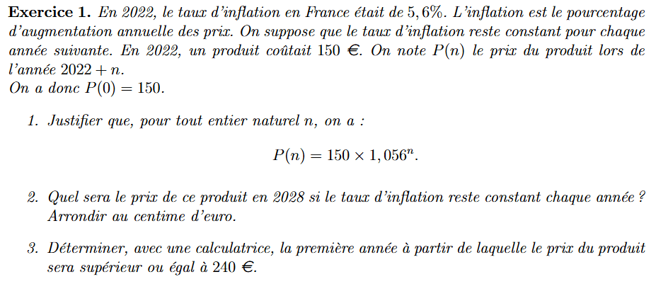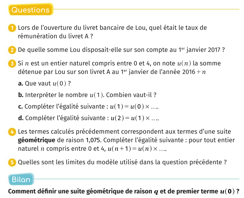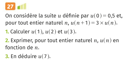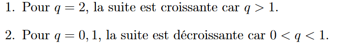 \text{entier naturel }n,\text{ on a : \quad }u({n+1})=u(n)\times q.