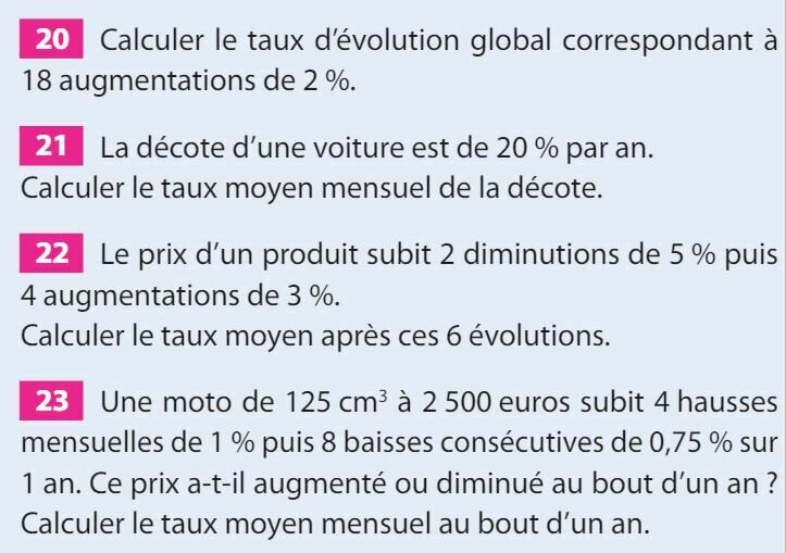 On veut calculer le taux d'évolution moyen annuel correspondant à une hausse globale de 20% en 10 ans.
