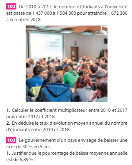 \(t\), le taux d'évolution moyen vérifie l'égalité suivante :