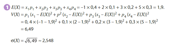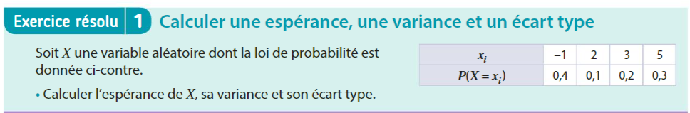 - La variance est la moyenne des carrés des écarts à l'espérance pondérés par les probabilités pi.