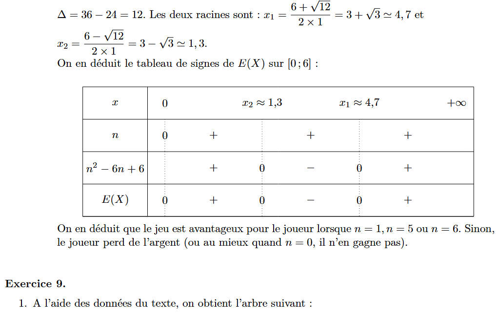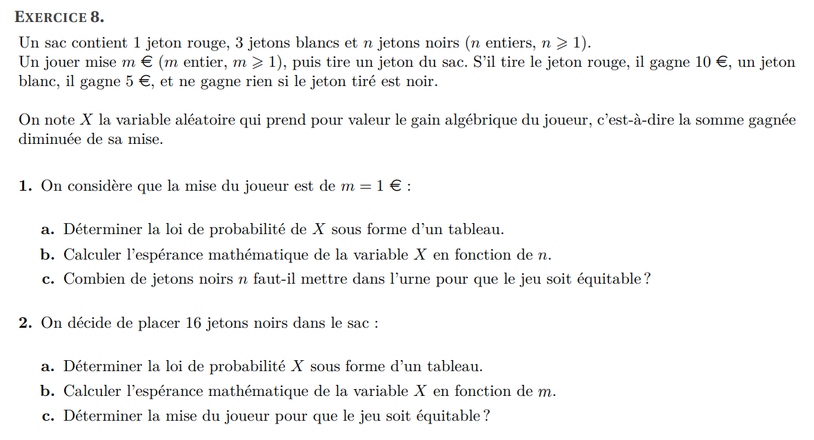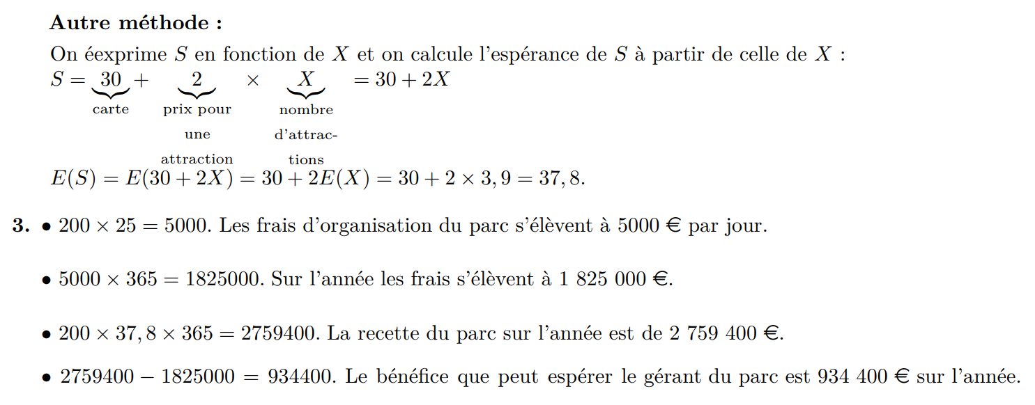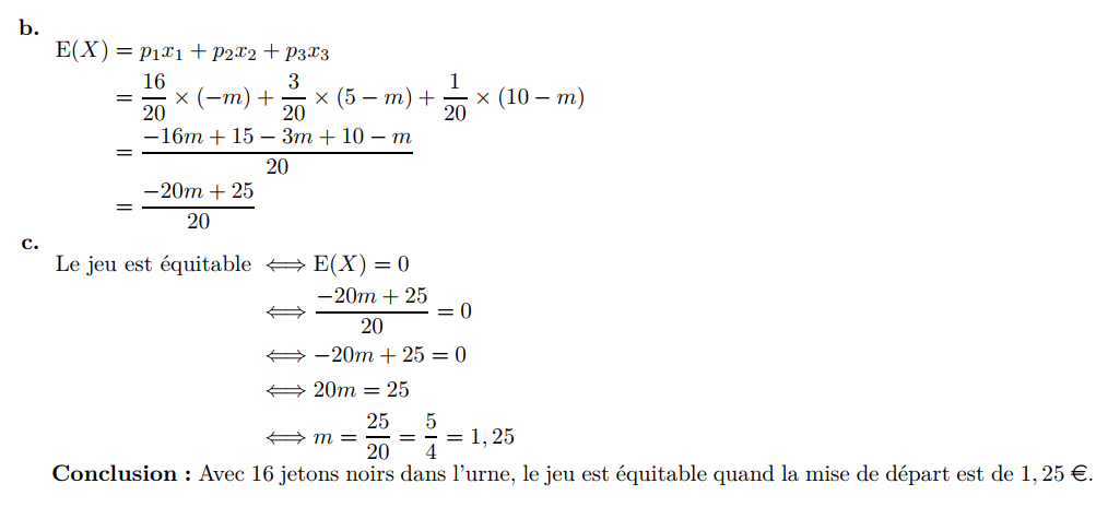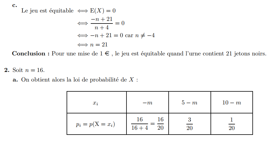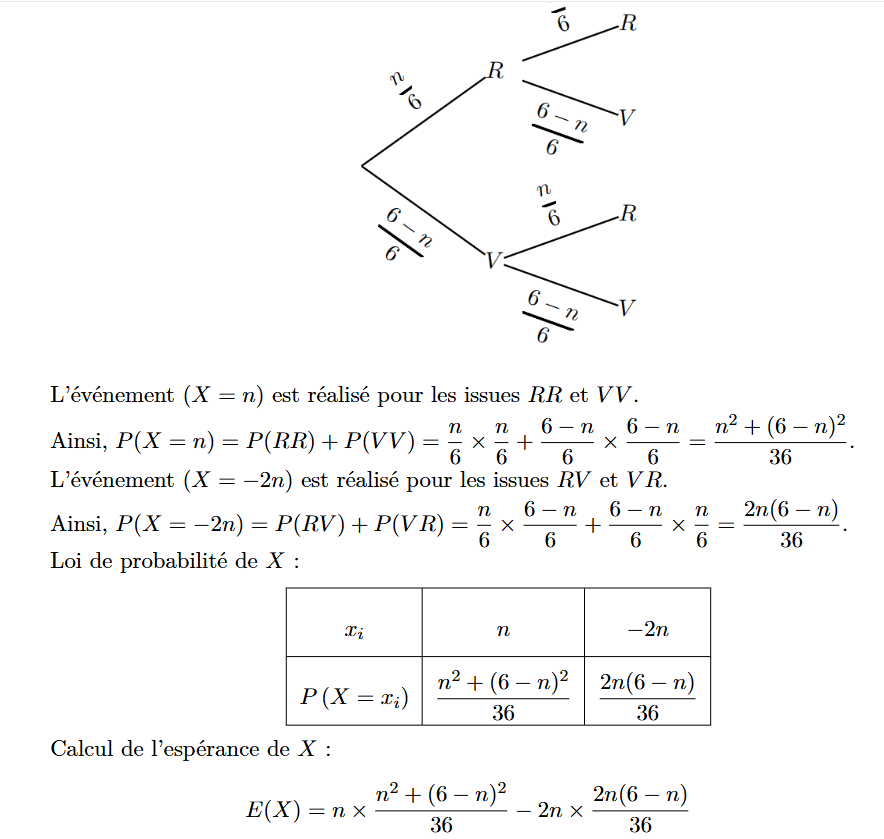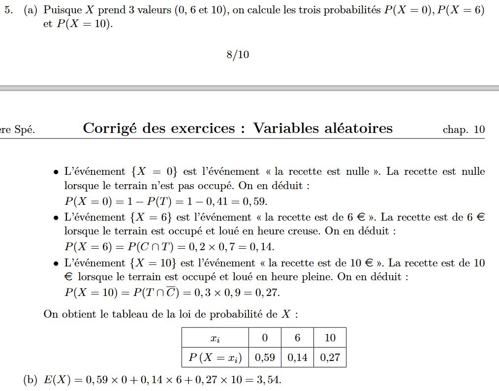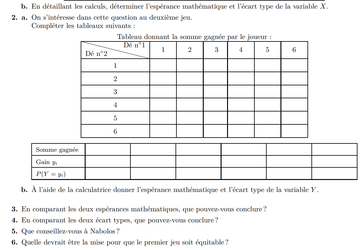 - Dans le deuxième exemple du 3.1 : E(X) > 0 donc ce jeu est favorable au joueur.