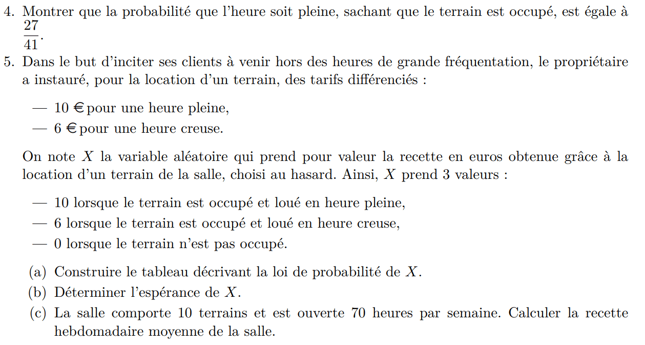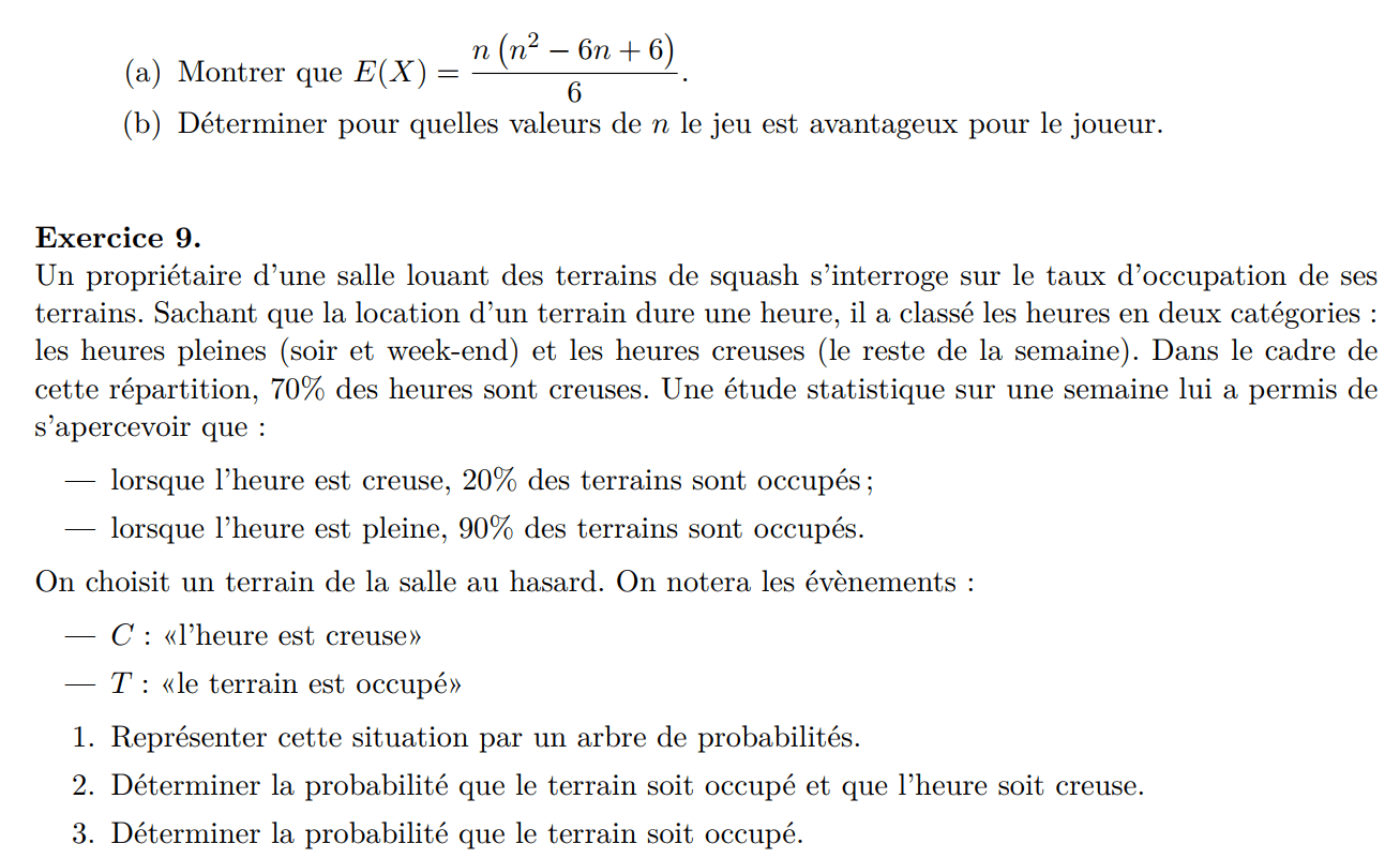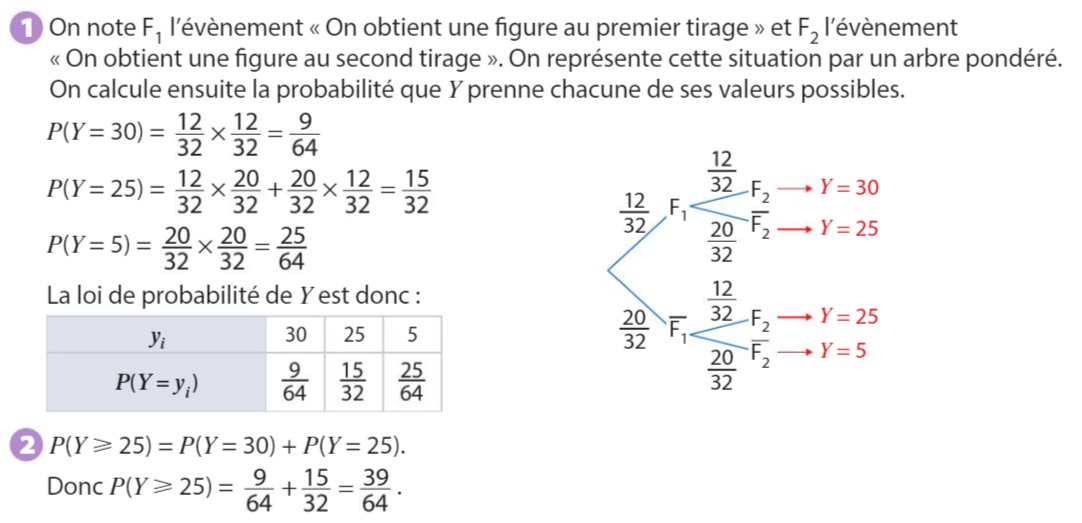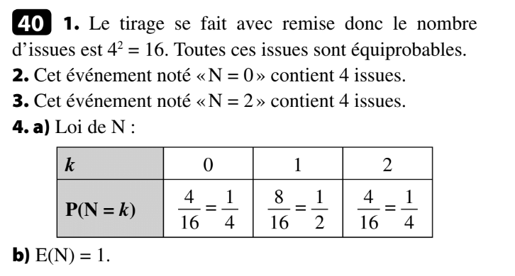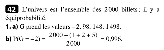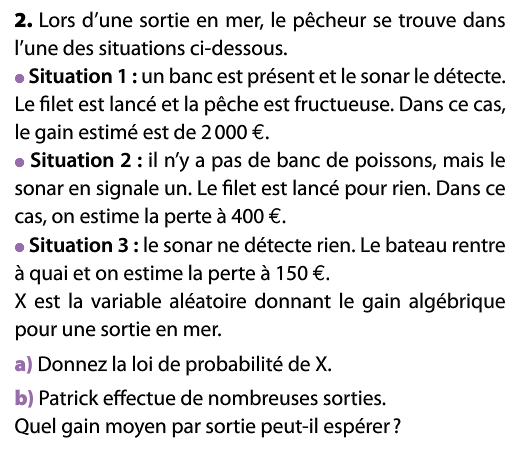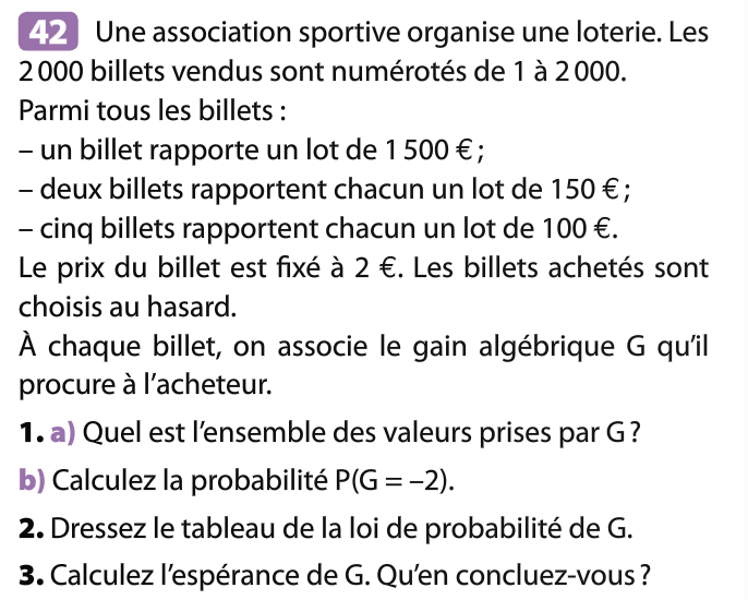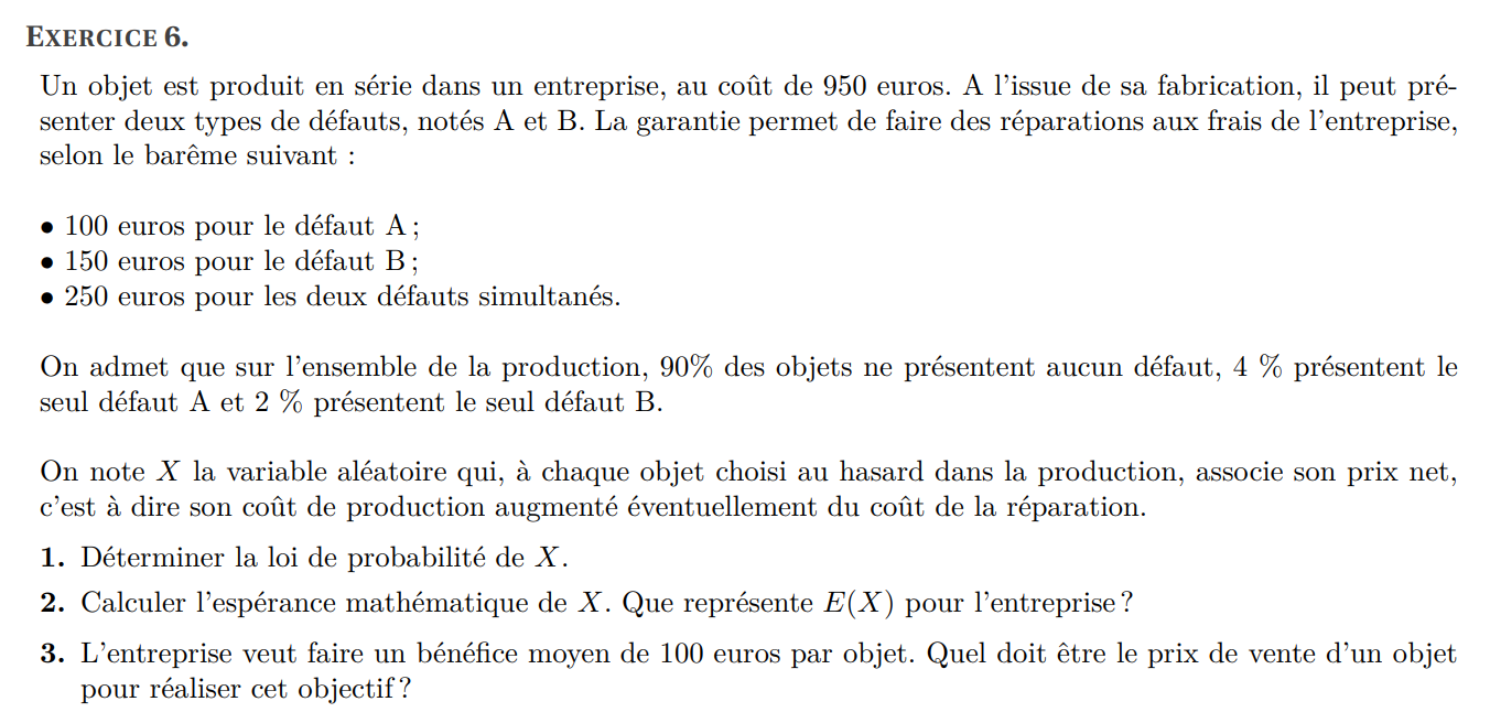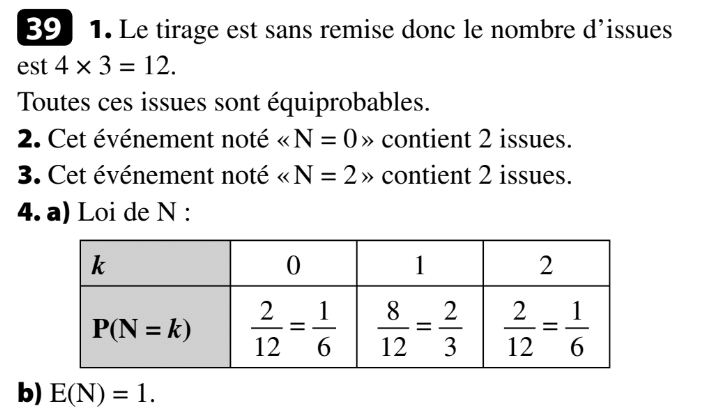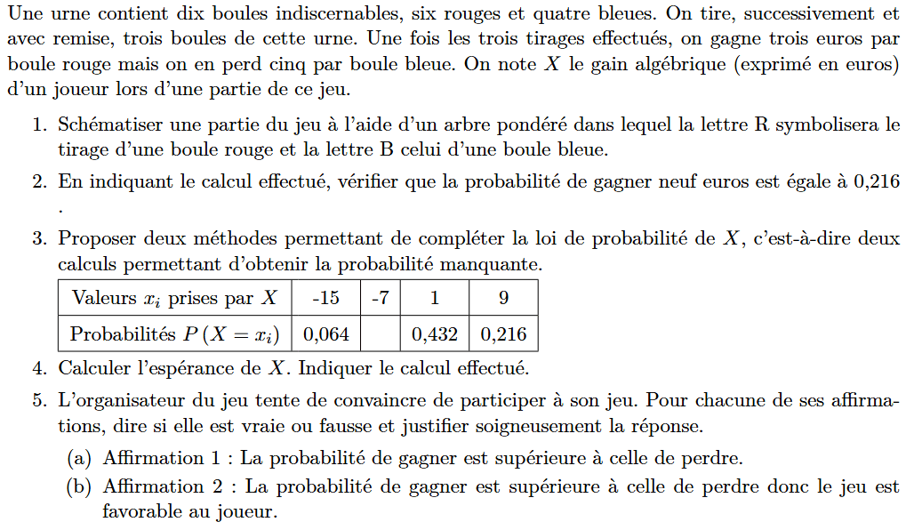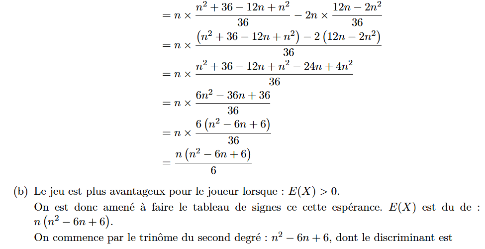 - Dans le deuxième exemple du 3.1 : E(X) > 0 donc ce jeu est favorable au joueur.