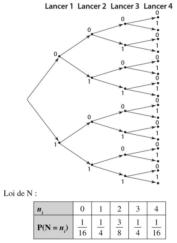 Exemple : On lance trois pièces de monnaie équilibrées.