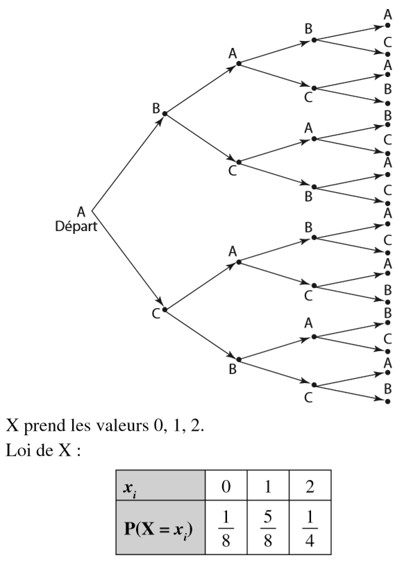 - L’événement X = 3 est {FFF}. Sa probabilité est p (X = 3) =
