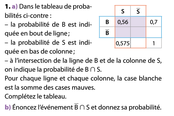p (A ∪ B) = p (A) + p (B) − p (A ∩ B) et p (\(\bar{A}\)) = 1 − p (A)